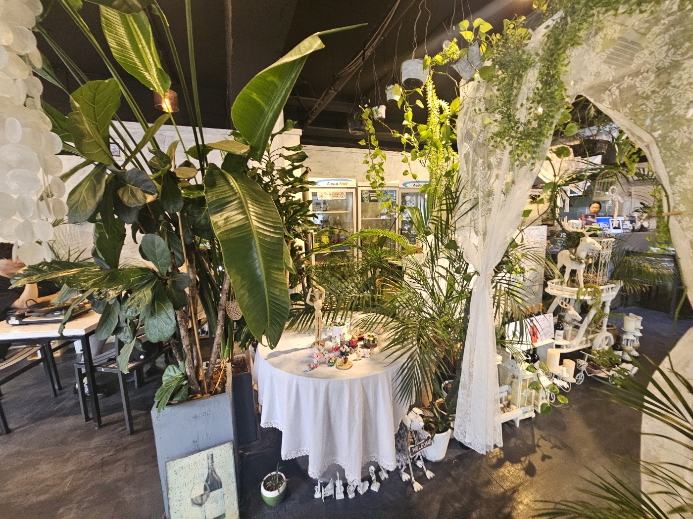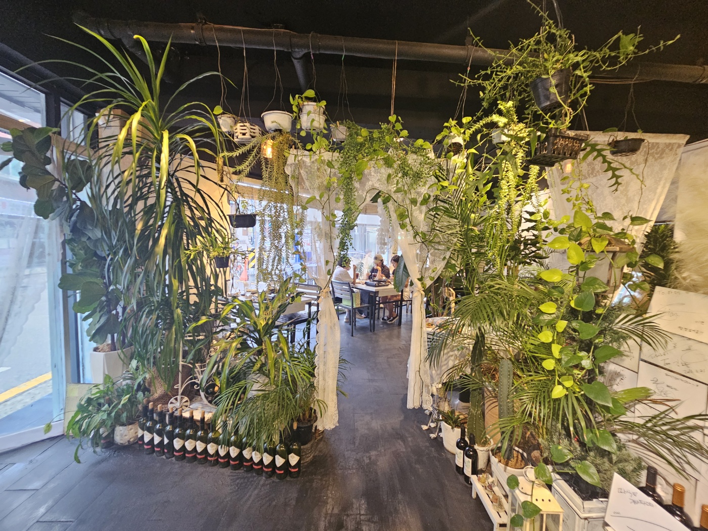 실내는 초록 식물과 나무 소재 인테리어가 어우러져 마치 작은 정원에 온 듯한 느낌이었어요.