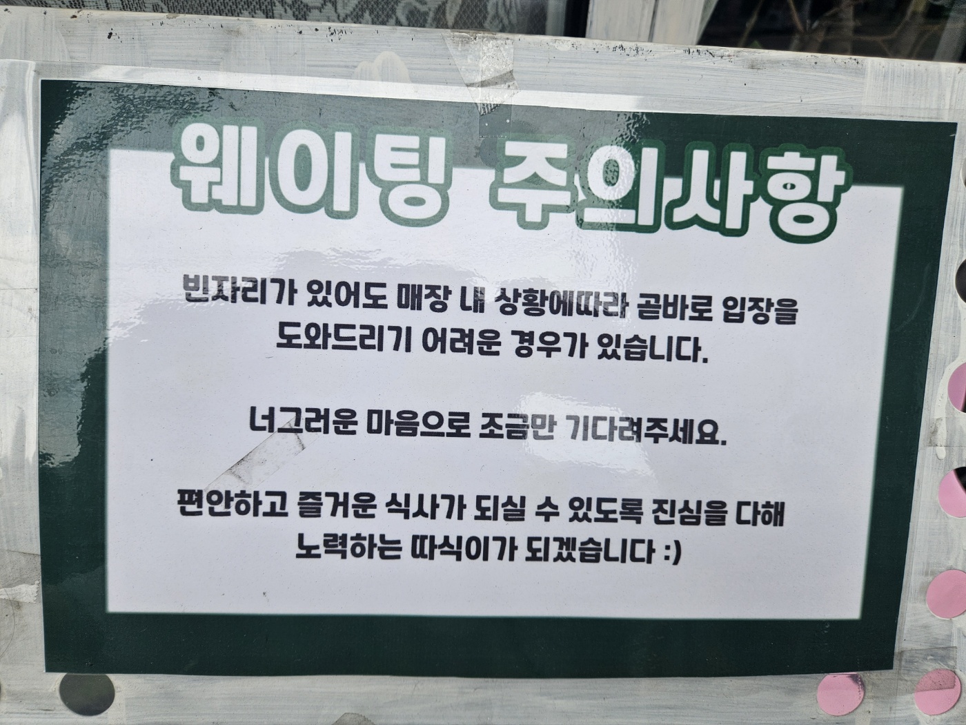 "웨이팅 주의사항"도 안내하고 있네요 ^^