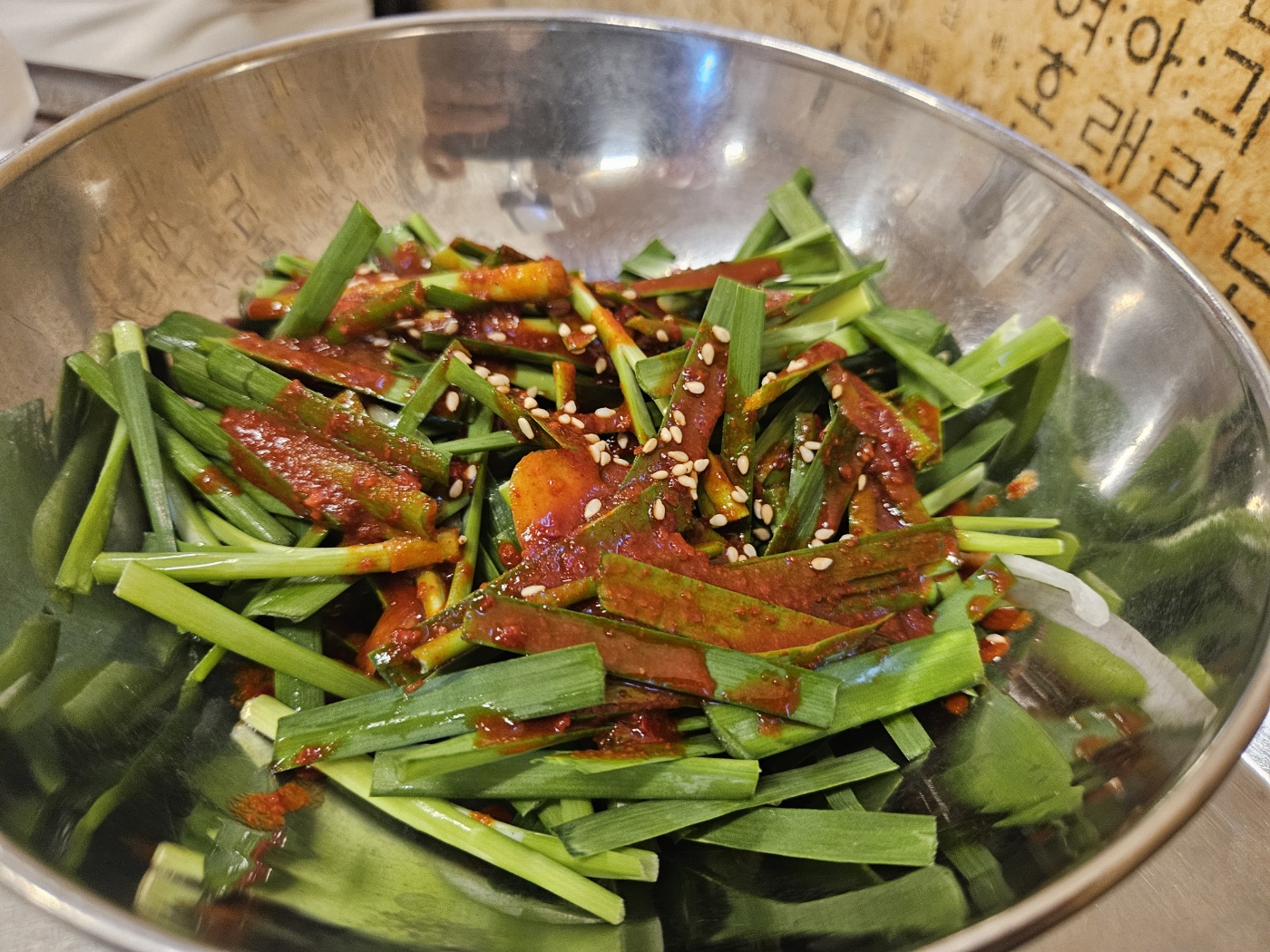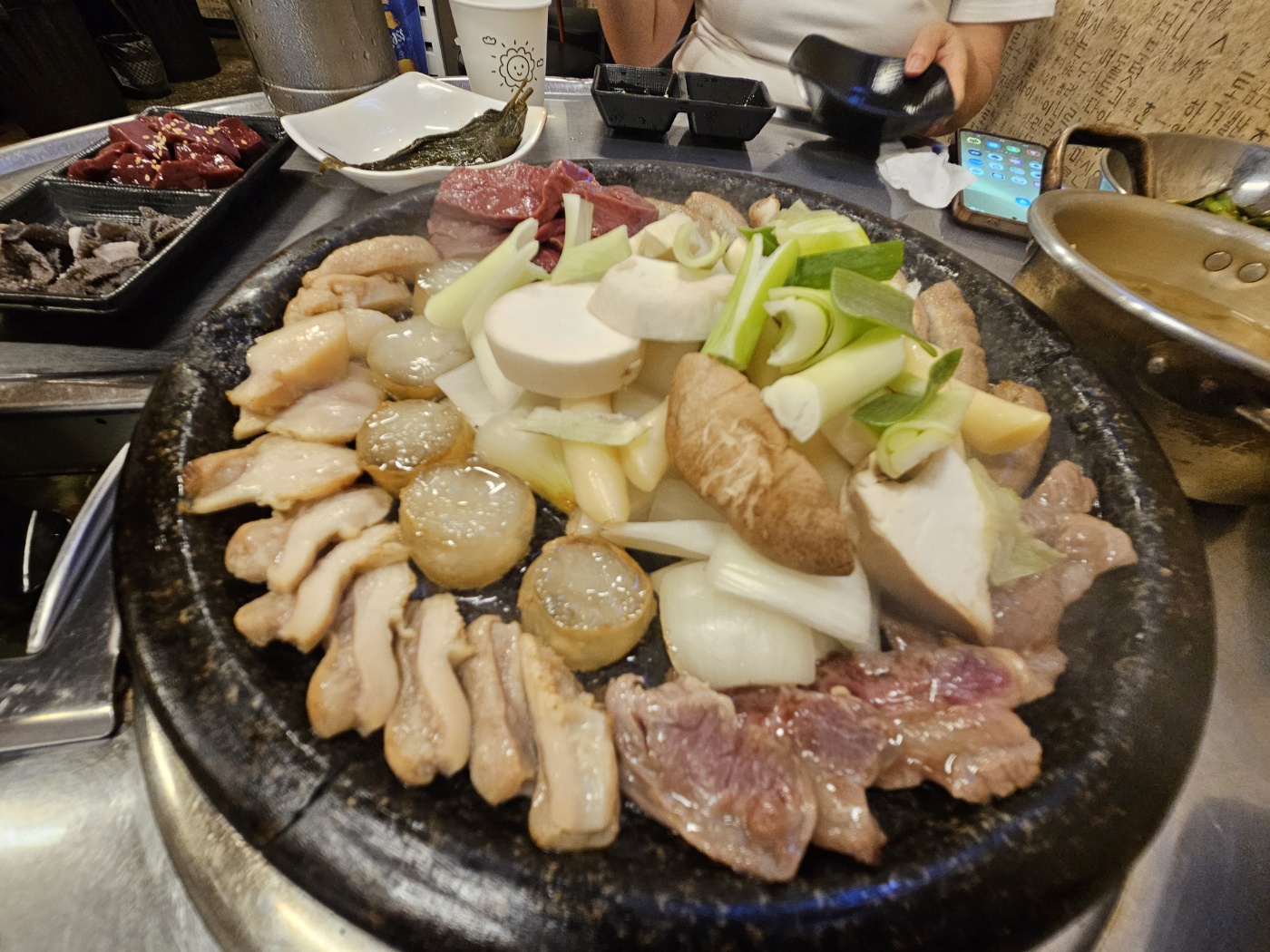 기본 셋팅은 된장국과 육사시미, 천엽, 간, 부추무침, 간장양파, 깻잎간장이 나와요~ 기본 반찬인데도 신선하고 맛있었어요. 테이블이 모두 원형이라 5명까지는 테이블 하나로 충분할 껏 같아요.