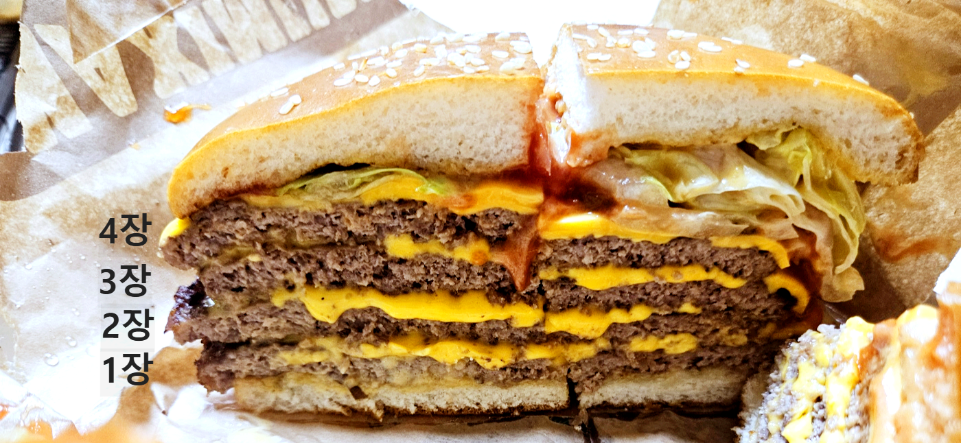 패티가 여러 장 들어가 있어서 그런지 고기맛이 확 살아있어요.