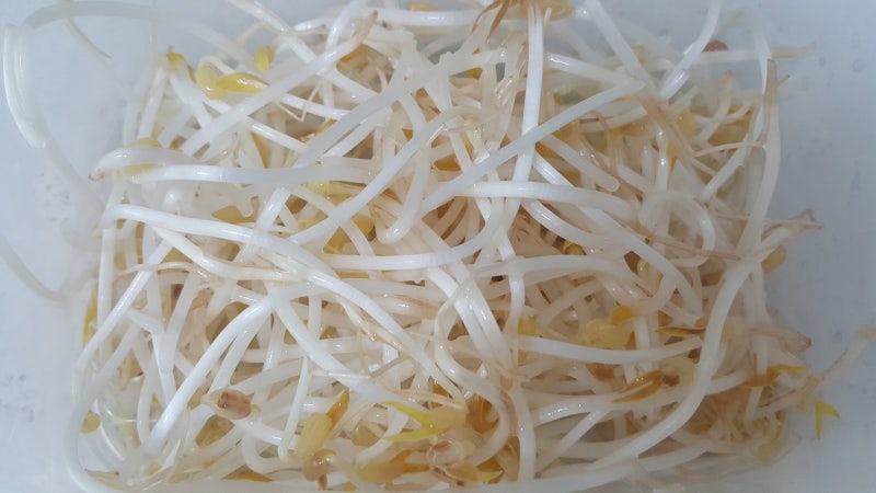 2. 숙주나물도 물에 씻은뒤 채반에 넣어주세요.